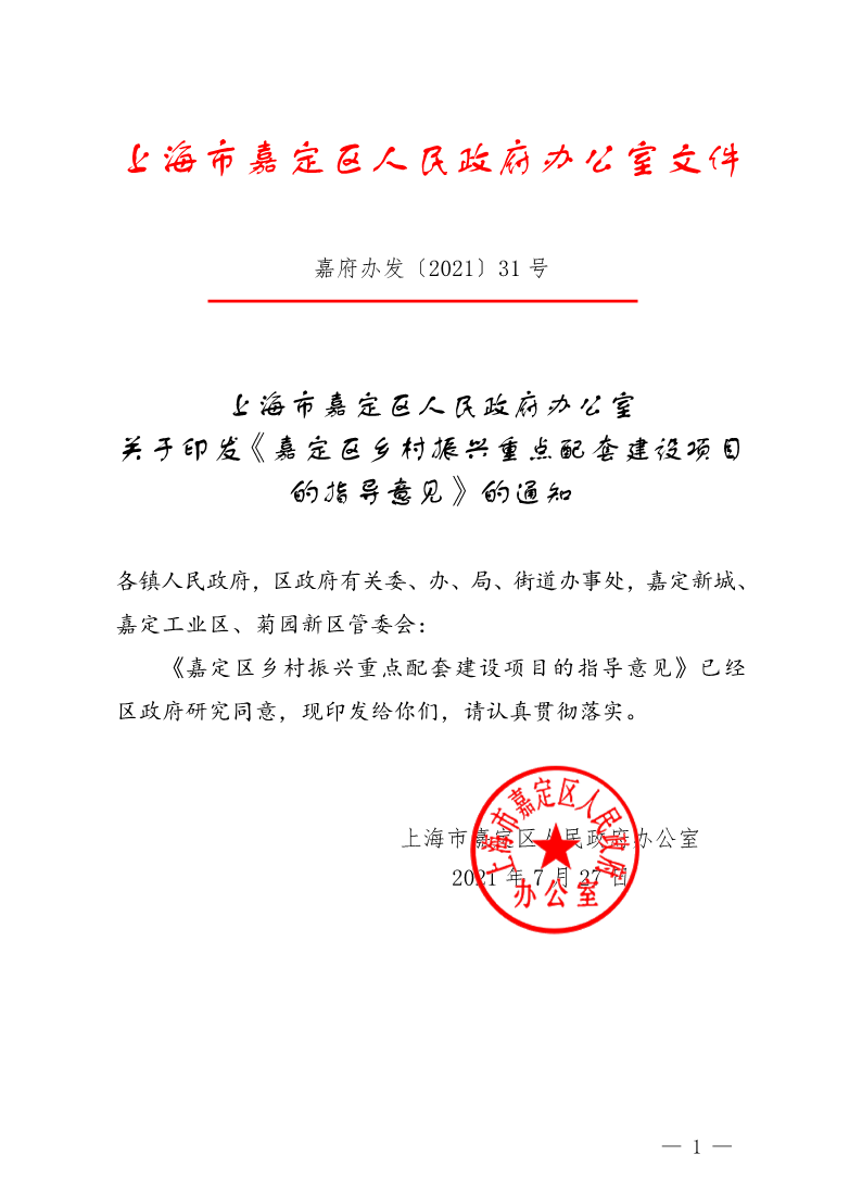 嘉定区乡村振兴重点配套建设项目的指导意见