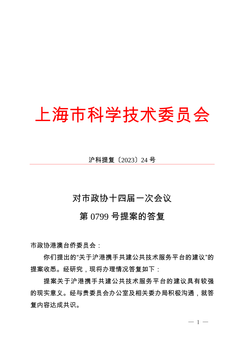 你们提出的“关于沪港携手共建公共技术服务平台的建议”的提案收悉。经研究,现将办理情况答复如下:
