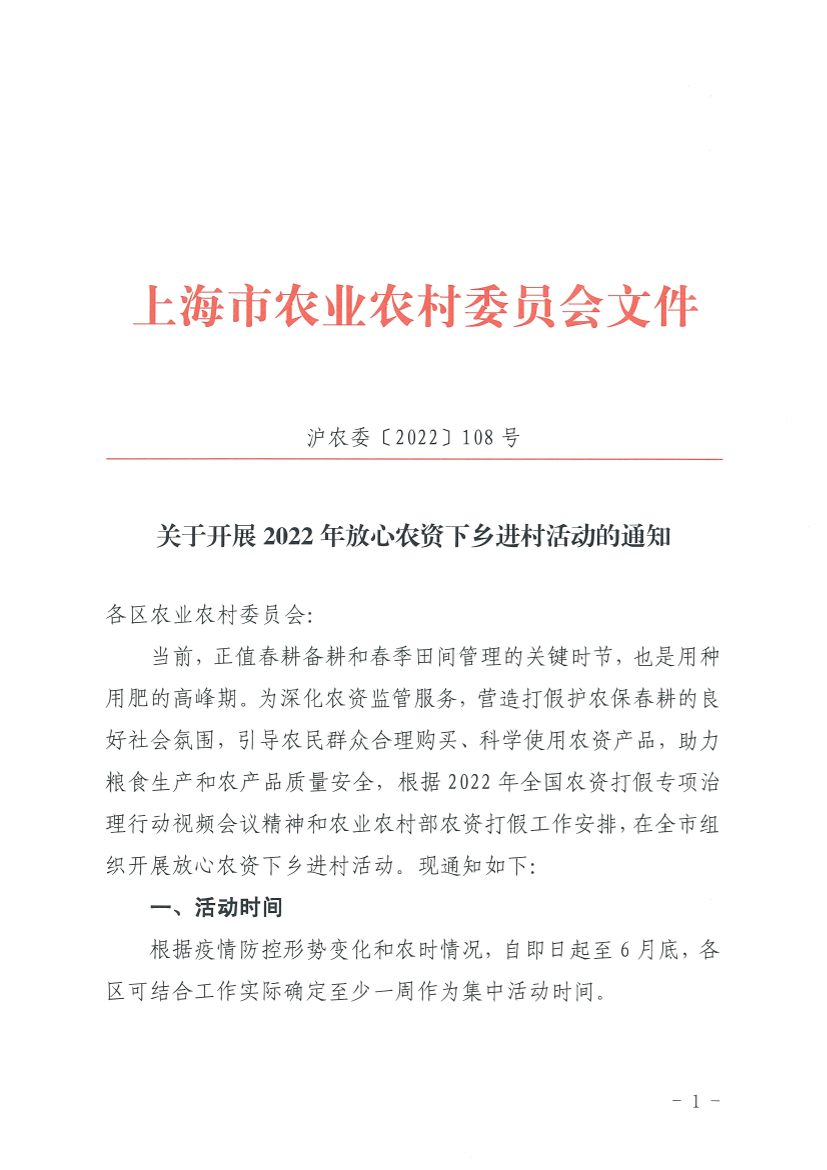 当前,正值春耕备耕和春季田间管理的关键时节,也是用种用肥的高峰期。为深化农资监管服务,营造打假护农保春耕的良好社会氛围,引导农民群众合理购买、科学使用农资产品,助力粮食生产和农产品质量安全,根据2022年全国农资打假专项治理行动视频会议精神和农业农村部农资打假工作安排,在全市组织开展放心农资下乡进村活动。现通知如下: