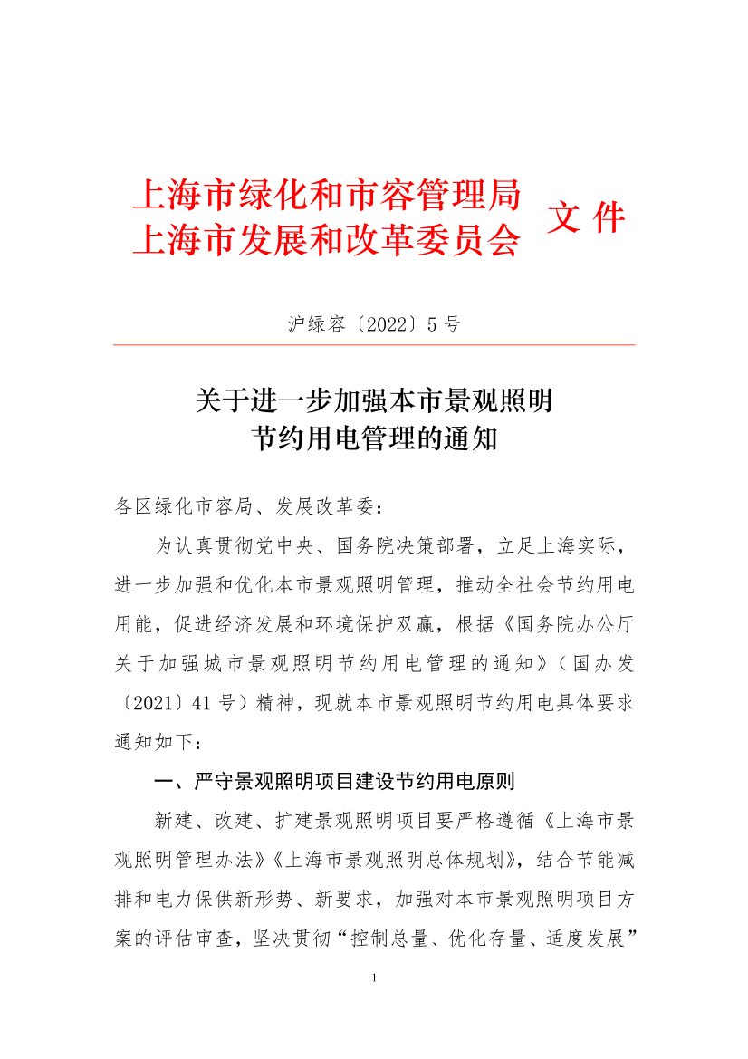 为认真贯彻党中央、国务院决策部署,立足上海实际,进一步加强和优化本市景观照明管理,推动全社会节约用电用能,促进经济发展和环境保护双赢,根据《国务院办公厅关于加强城市景观照明节约用电管理的通知》(国办发〔2021〕41号)精神,现就本市景观照明节约用电具体要求通知如下: