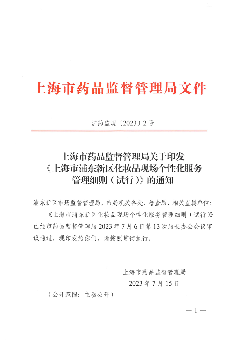 上海市浦东新区化妆品现场个性化服务管理细则(试行)
