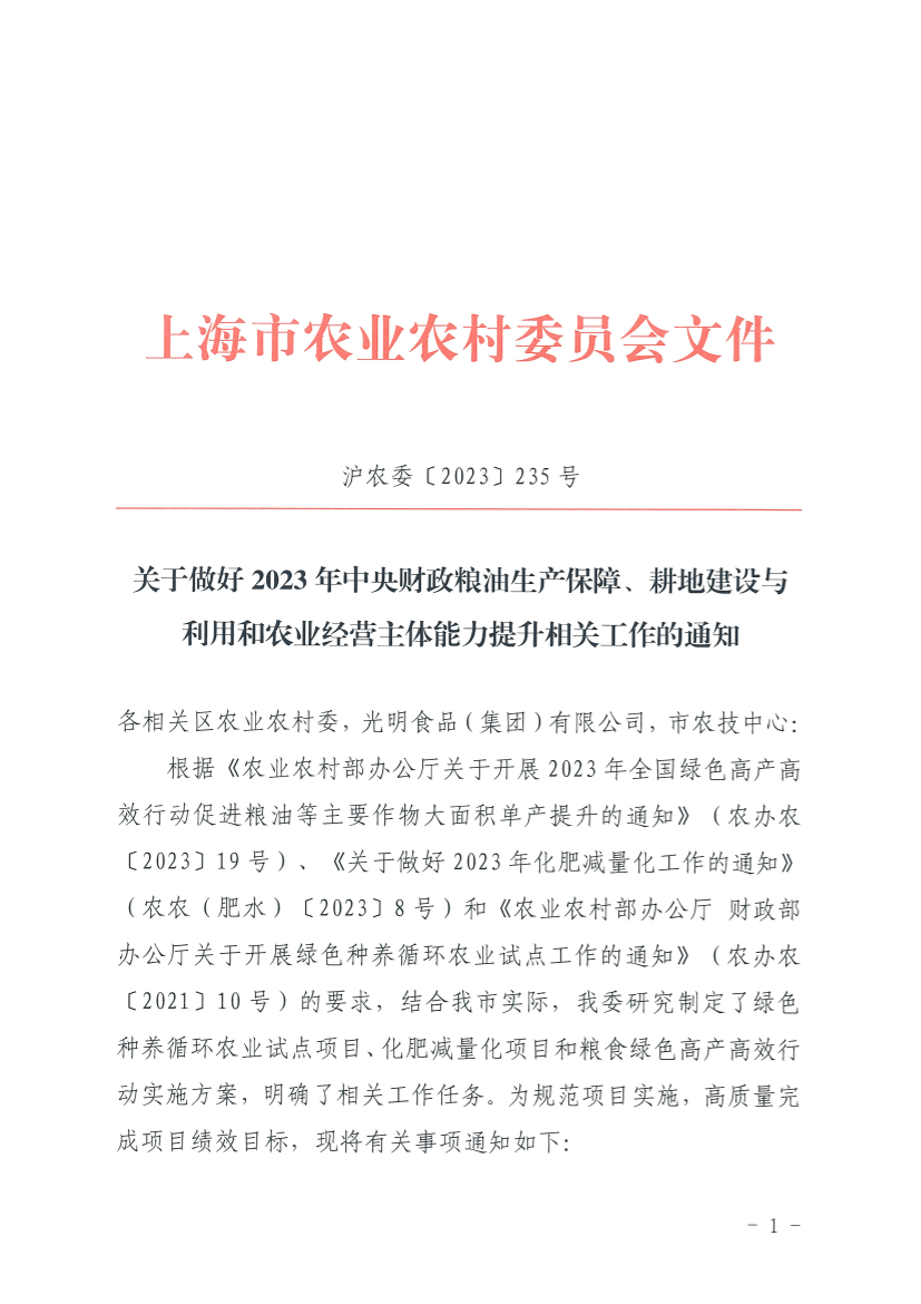 (三)绿色种养循环农业试点项目:嘉定区农业农村委、金山区农业农村委、崇明区农业农村委,光明食品(集团)有限公司。