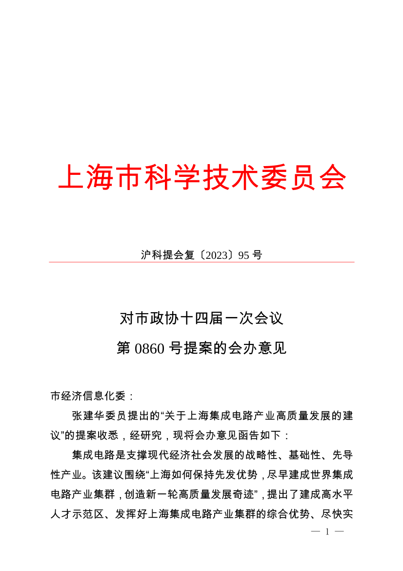 张建华委员提出的“关于上海集成电路产业高质量发展的建议”的提案收悉,经研究,现将会办意见函告如下: