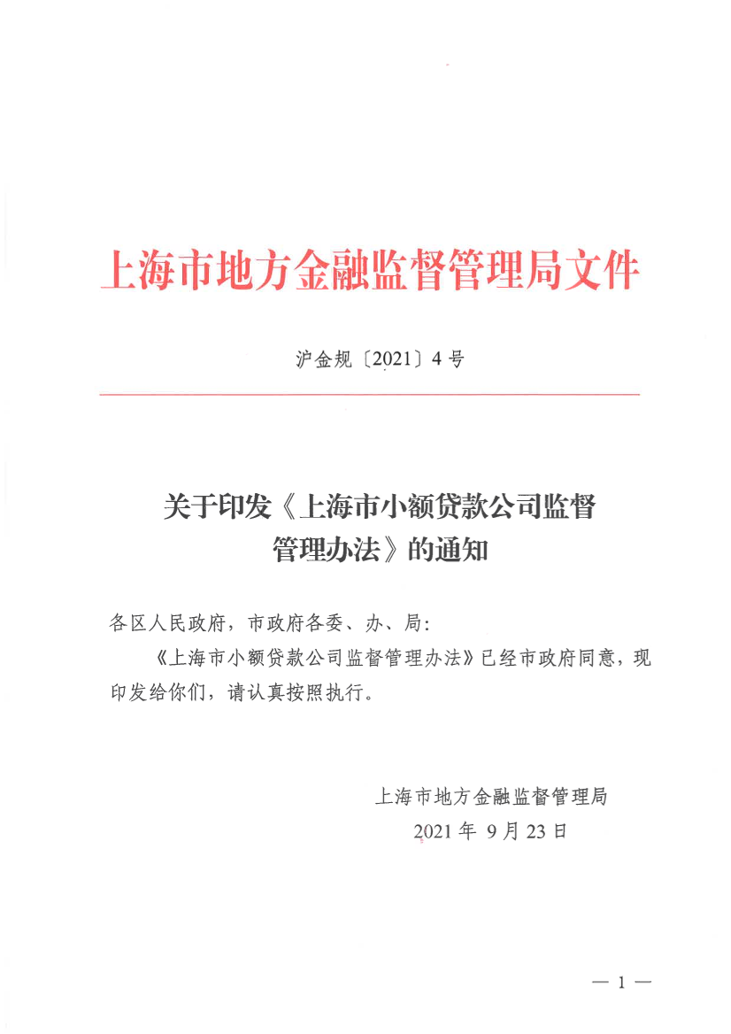 《上海市小额贷款公司监督管理办法》已经市政府同意,现印发给你们,请认真按照执行。