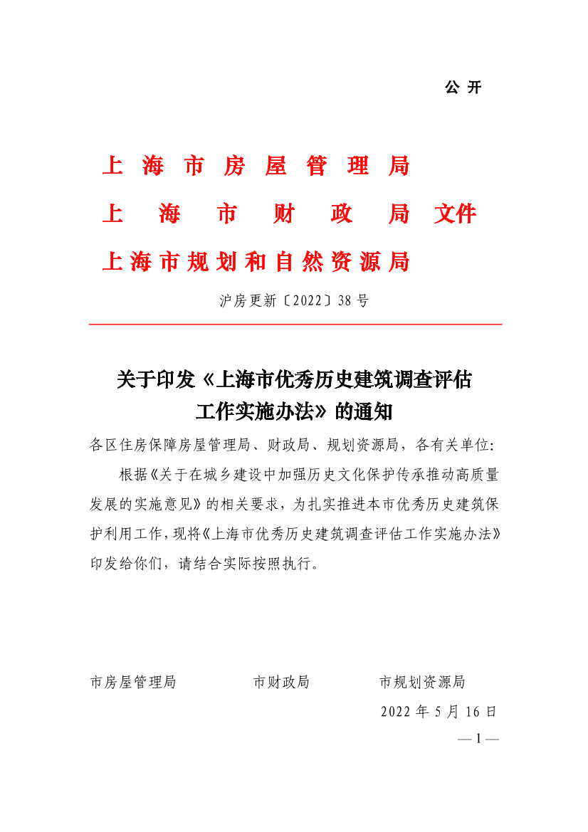 根据《关于在城乡建设中加强历史文化保护传承推动高质量发展的实施意见》的相关要求,为扎实推进本市优秀历史建筑保护利用工作,现将《上海市优秀历史建筑调查评估工作实施办法》印发给你们,请结合实际按照执行。