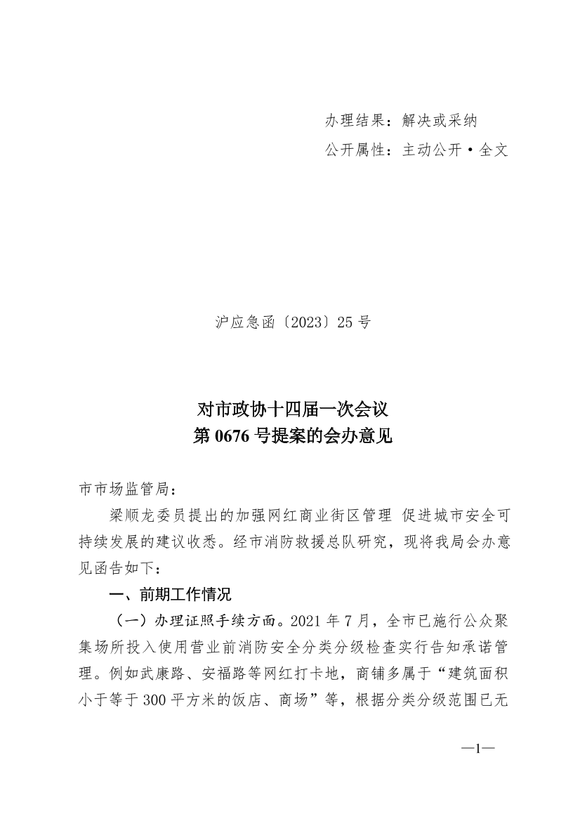 梁顺龙委员提出的加强网红商业街区管理 促进城市安全可持续发展的建议收悉。经市消防救援总队研究,现将我局会办意见函告如下: