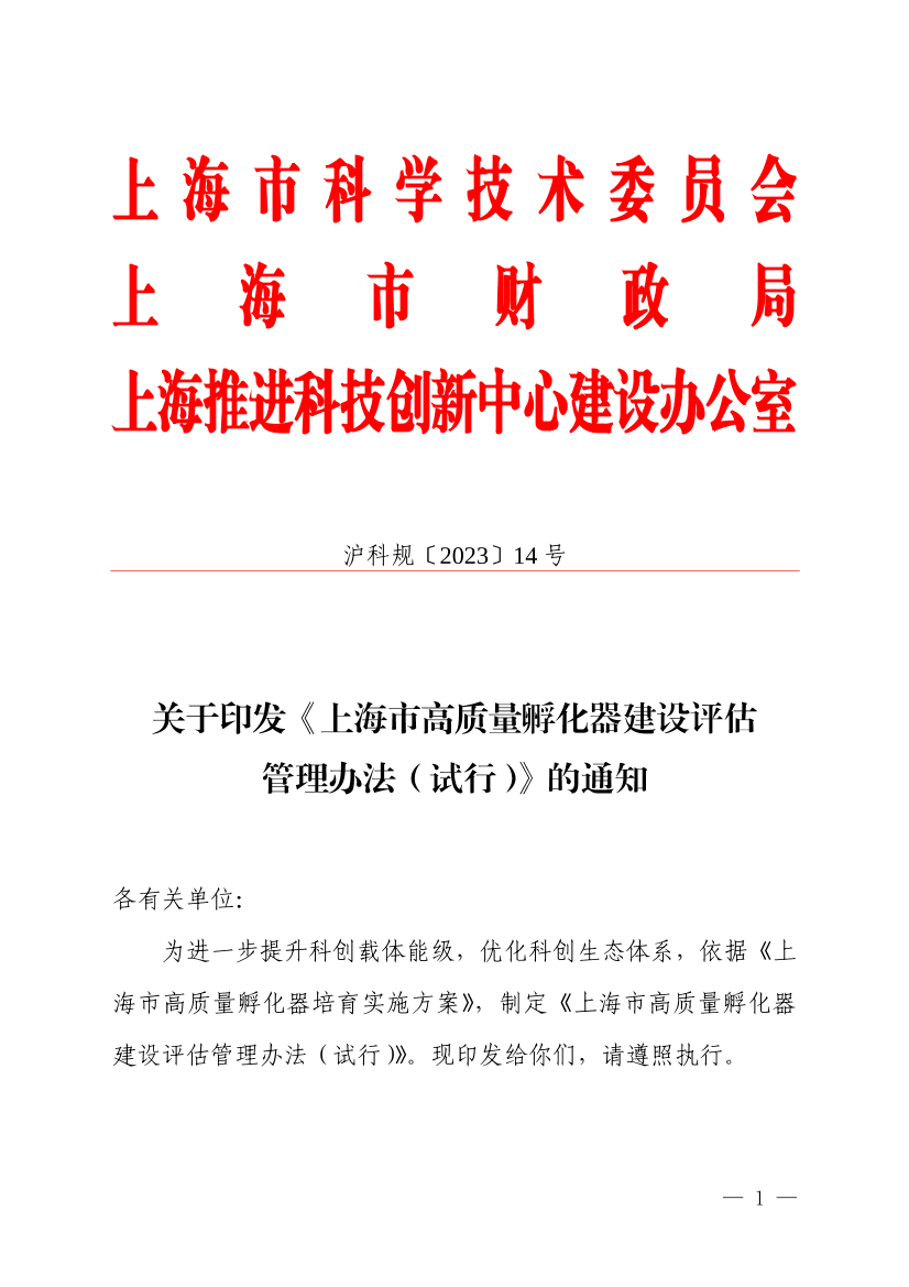 为进一步提升科创载体能级,优化科创生态体系,依据《上海市高质量孵化器培育实施方案》,制定《上海市高质量孵化器建设评估管理办法(试行)》。现印发给你们,请遵照执行。