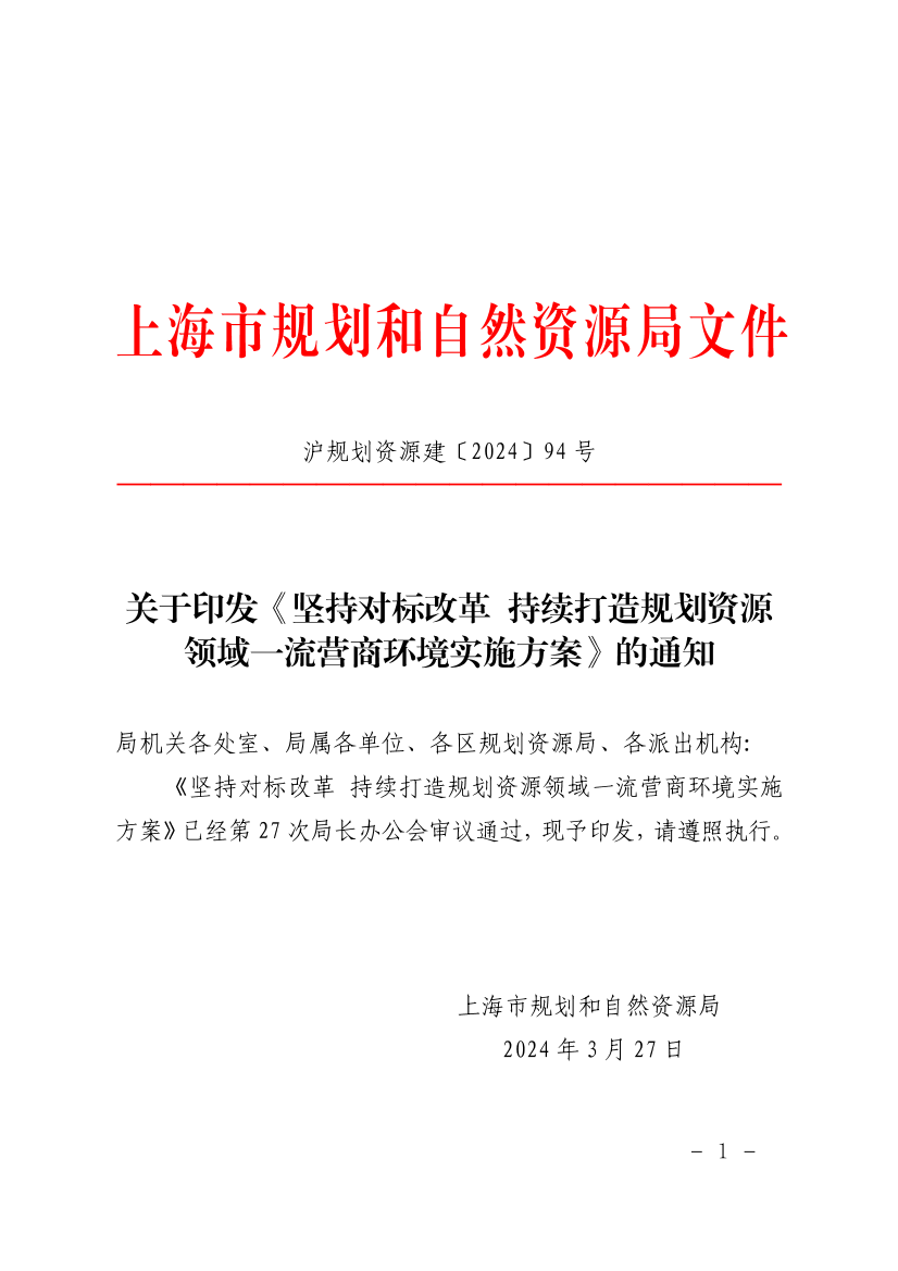 关于印发《坚持对标改革 持续打造规划资源领域一流营商环境实施方案》的通知