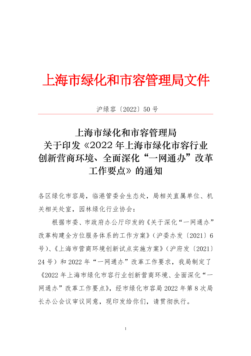附件:2022年上海市绿化市容行业创新营商环境、全面深化“一网通办”改革工作要点