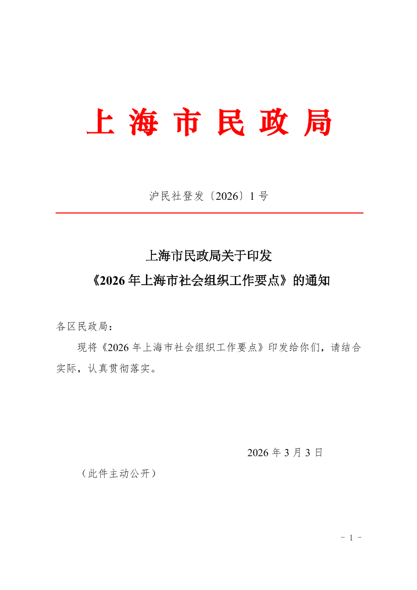 现将《2026年上海市社会组织工作要点》印发给你们,请结合实际,认真贯彻落实。