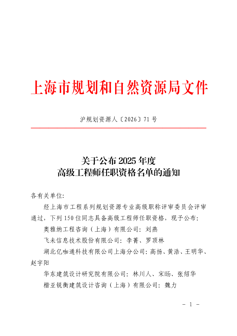 关于公布2025年度高级工程师任职资格名单的通知