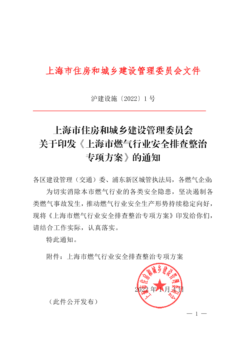 为切实消除本市燃气行业的各类安全隐患,坚决遏制各类燃气事故发生,推动燃气行业安全生产形势持续稳定向好,现将《上海市燃气行业安全排查整治专项方案》印发给你们,请结合工作实际,认真落实。
