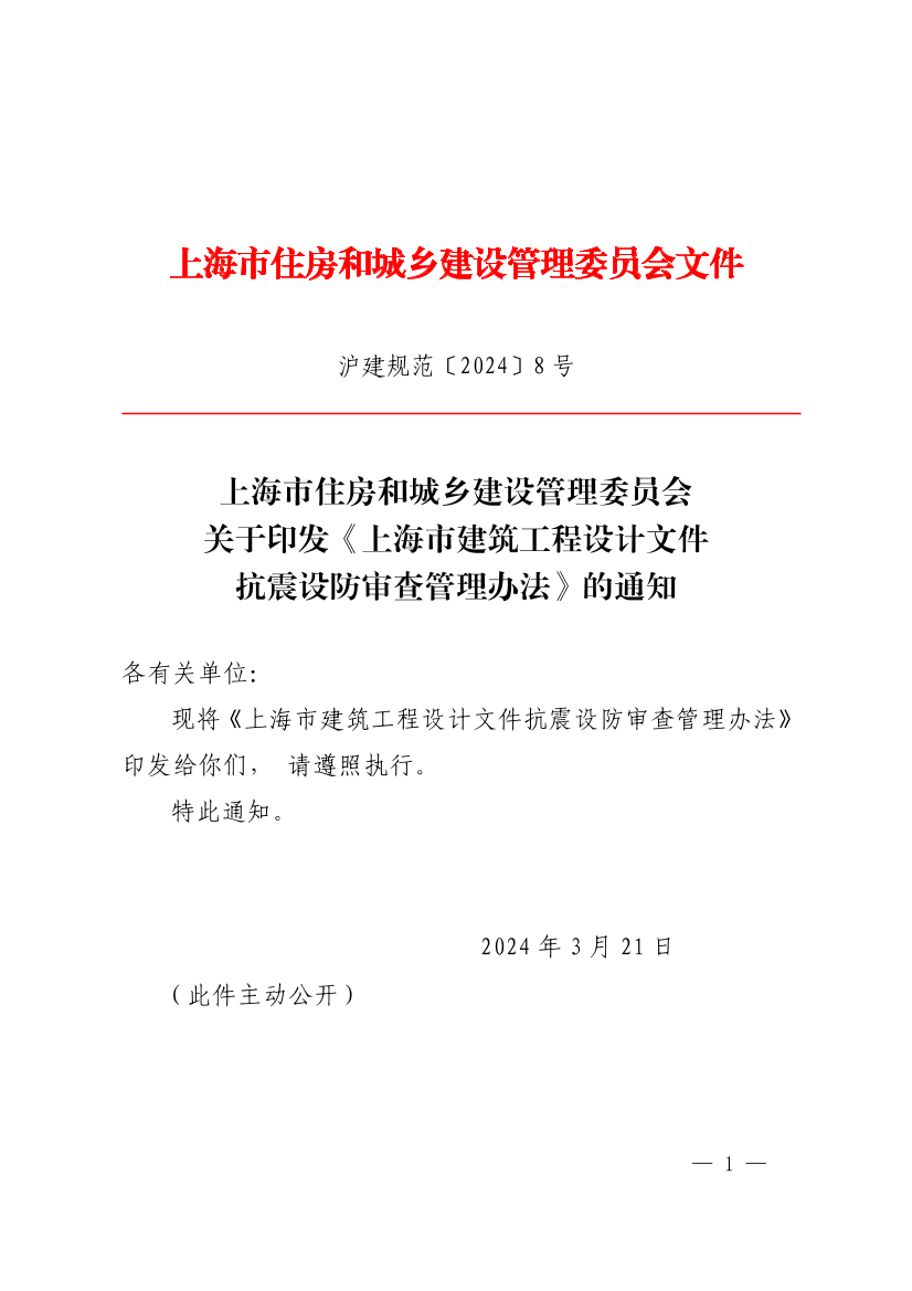 关于印发《上海市建筑工程设计文件抗震设防审查管理办法》的通知