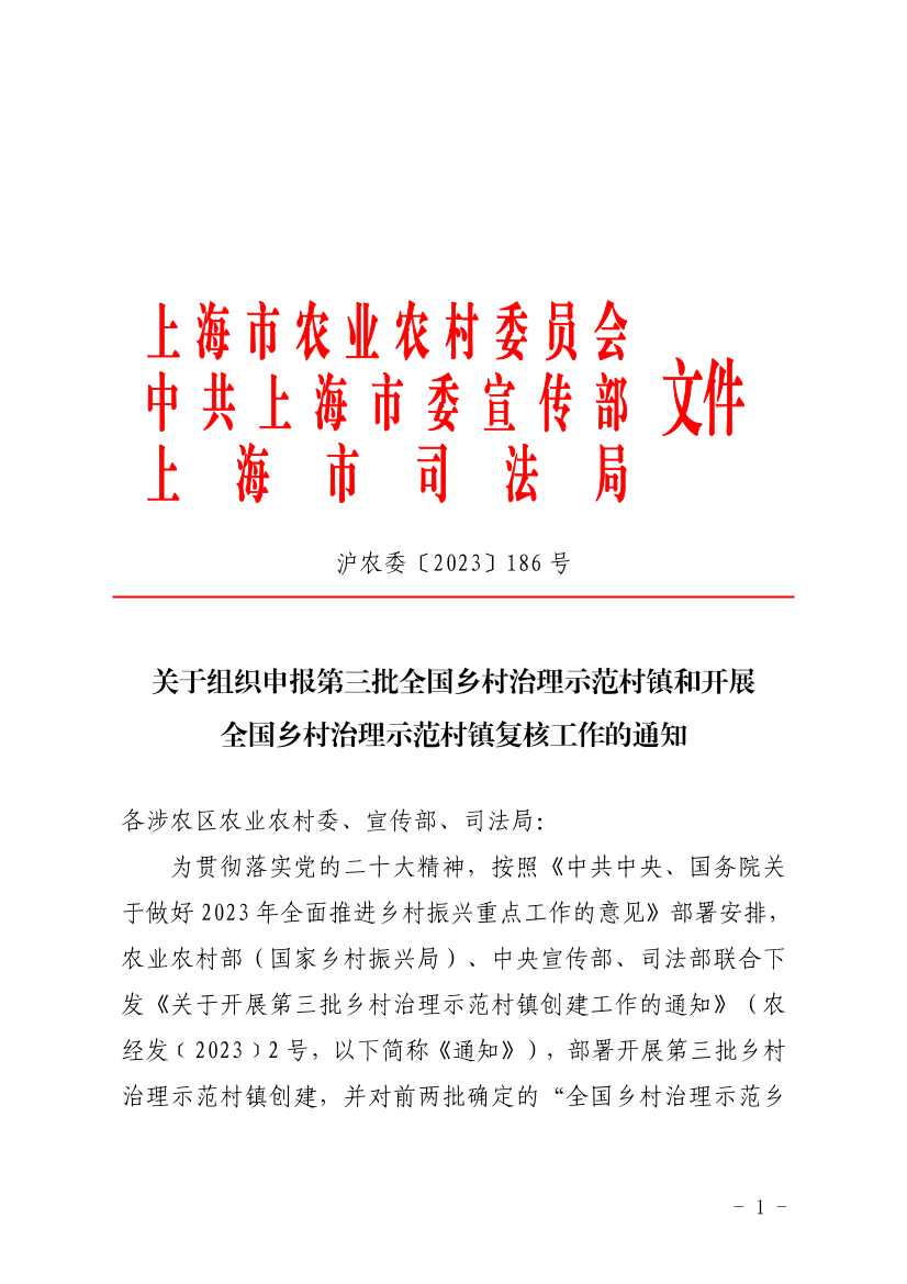 附件:1.《农业农村部 中央宣传部 司法部关于开展第三批乡村治理示范村镇创建工作的通知》(农经发﹝2023﹞2号)