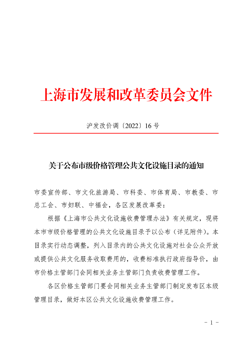 根据《上海市公共文化设施收费管理办法》有关规定,现将本市市级价格管理的公共文化设施目录予以公布(详见附件)。本目录实行动态调整,列入目录内的公共文化设施对社会公众开放或提供公共文化服务收取费用的,收费标准执行政府指导价,由市价格主管部门会同相关业务主管部门负责收费管理工作。