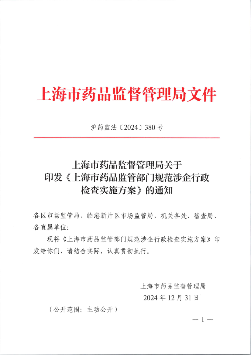 为规范涉企行政检查行为,提升行政执法质效,切实维护市场主体合法权益,根据市发展改革委《关于印发〈优化本市涉企行政检查工作方案〉和〈上海市涉企行政检查工作指引(2024版)〉的通知》(沪发改营商〔2024〕15号)、上海市市场监督管理局《关于印发<上海市市场监管部门规范涉企行政检查实施方案>的通知》(沪市监办发〔2024〕0529号),结合本市药品监管工作实际,制定如下实施方案。