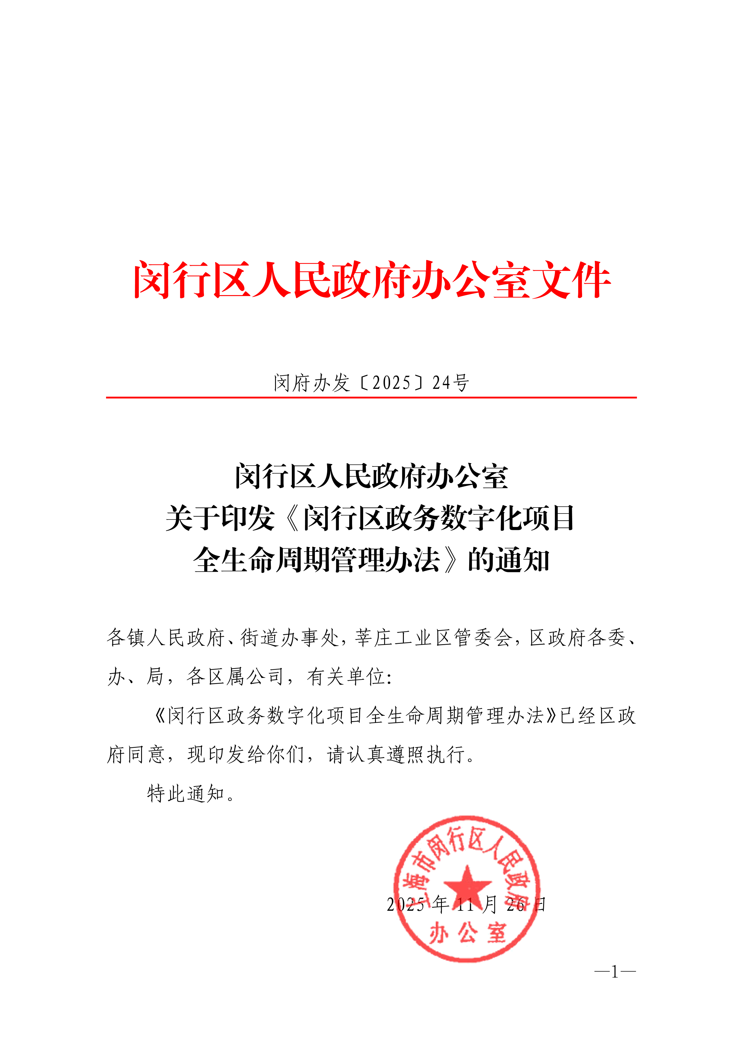 《闵行区政务数字化项目全生命周期管理办法》已经区政府同意,现印发给你们,请认真遵照执行。