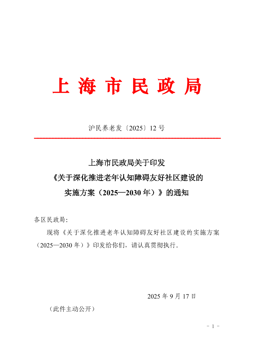现将《关于深化推进老年认知障碍友好社区建设的实施方案(2025—2030年)》印发给你们,请认真贯彻执行。