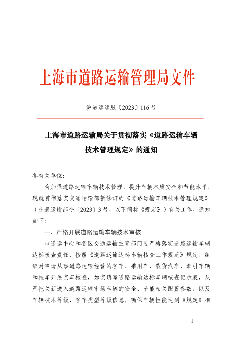 为加强道路运输车辆技术管理,提升车辆本质安全和节能水平,现就贯彻落实交通运输部新修订的《道路运输车辆技术管理规定》(交通运输部令〔2023〕3号,以下简称《规定》)有关工作,通知如下: