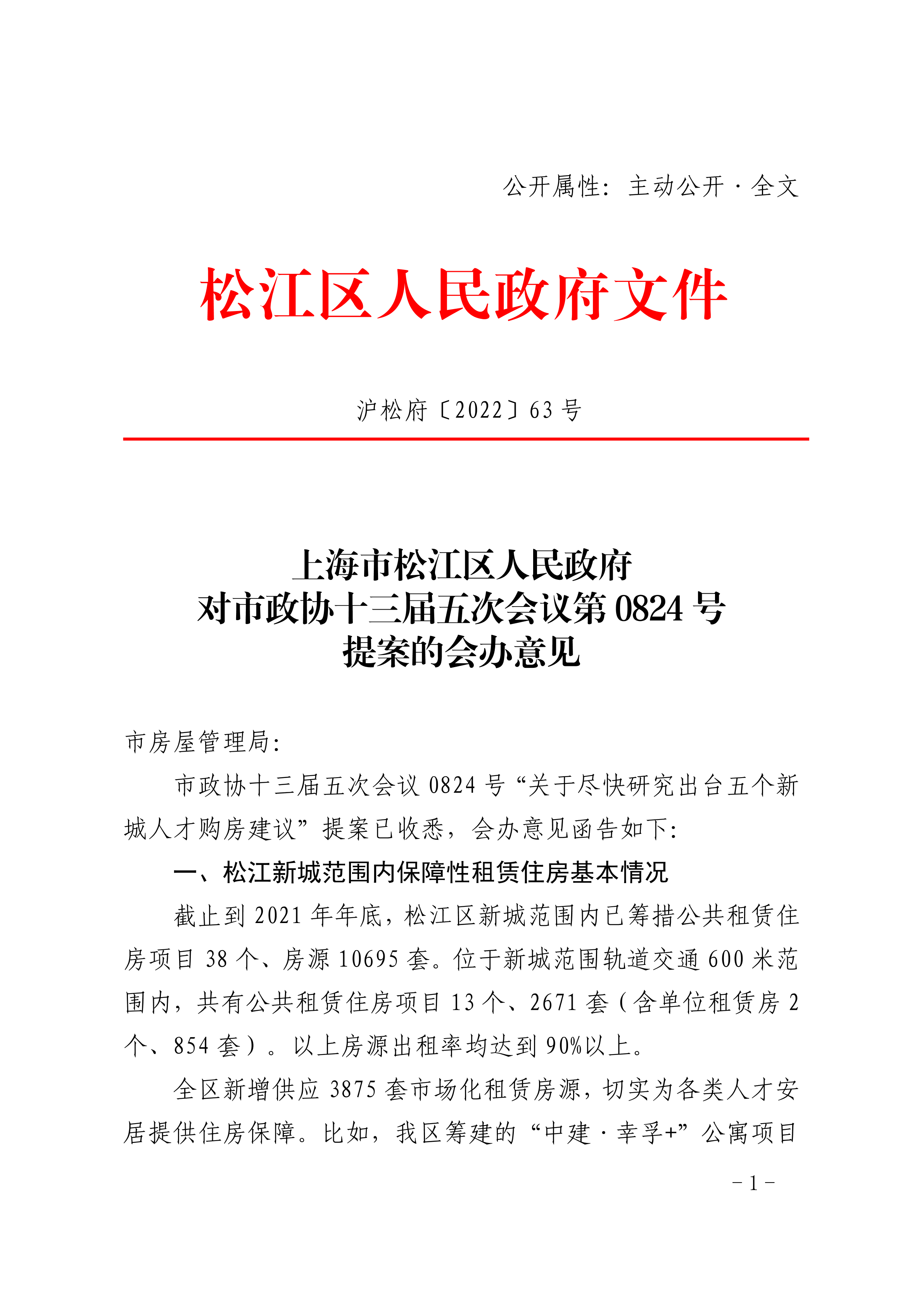 市政协十三届五次会议0824号“关于尽快研究出台五个新城人才购房建议”提案已收悉,会办意见函告如下: