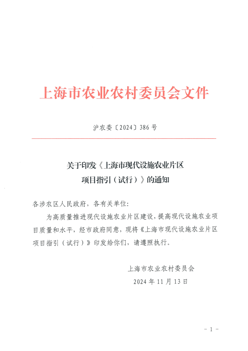 1.5 适用范围。用于指导《上海市现代设施农业专项规划(2024-2035年)》(沪府〔2024〕39号)确定的12个现代设施农业片区项目的规划设计、立项申报、评审以及招商引资等工作。
