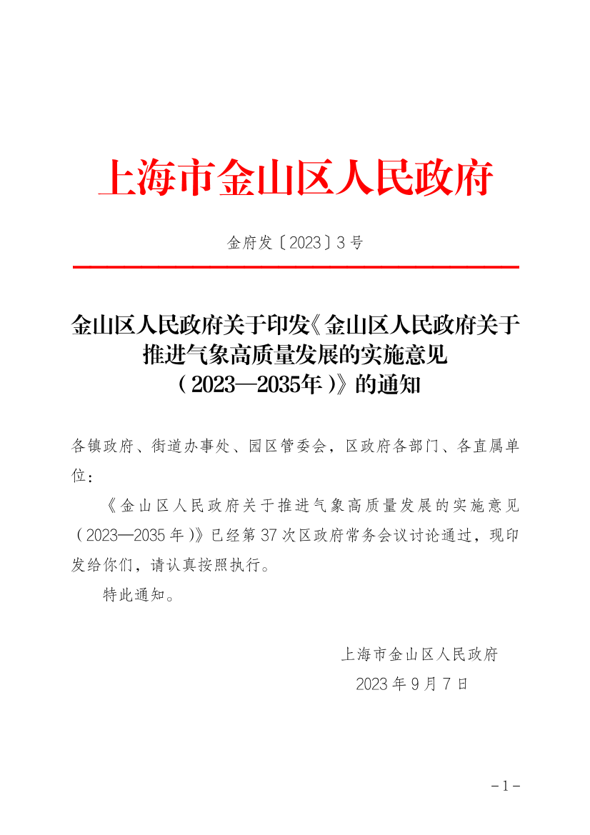 金山区人民政府关于推进气象高质量发展的实施意见(2023─2035年)