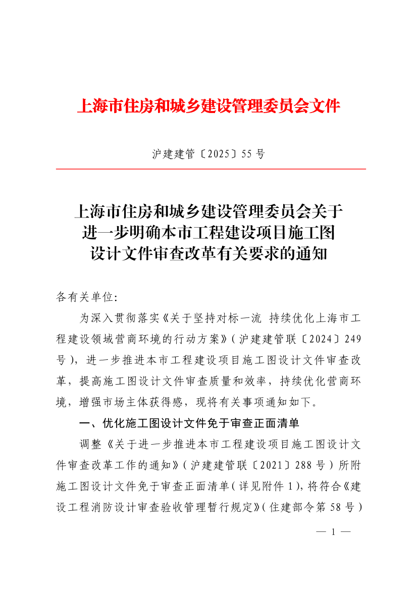 附件:1.上海市建设工程施工图设计文件免于审查正面清单