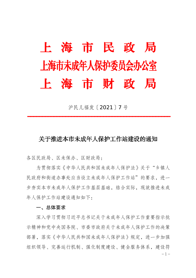 为更好地推动各区未成年人保护工作站建设,现将《上海市未成年人保护工作站建设指引》一并印发,请各区参照执行。