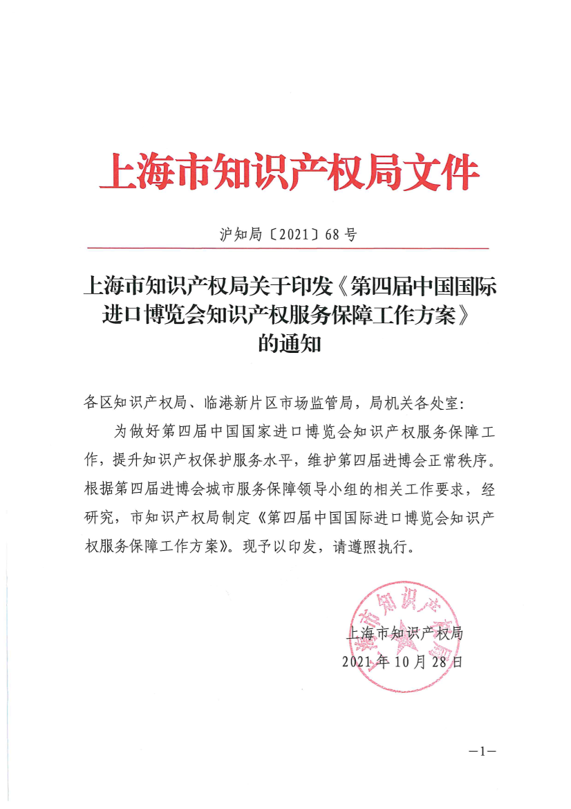 第四届中国国际进口博览会知识产权服务保障工作方案