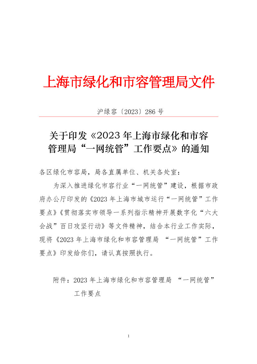 附件:2023年上海市绿化和市容管理局 “一网统管”工作要点
