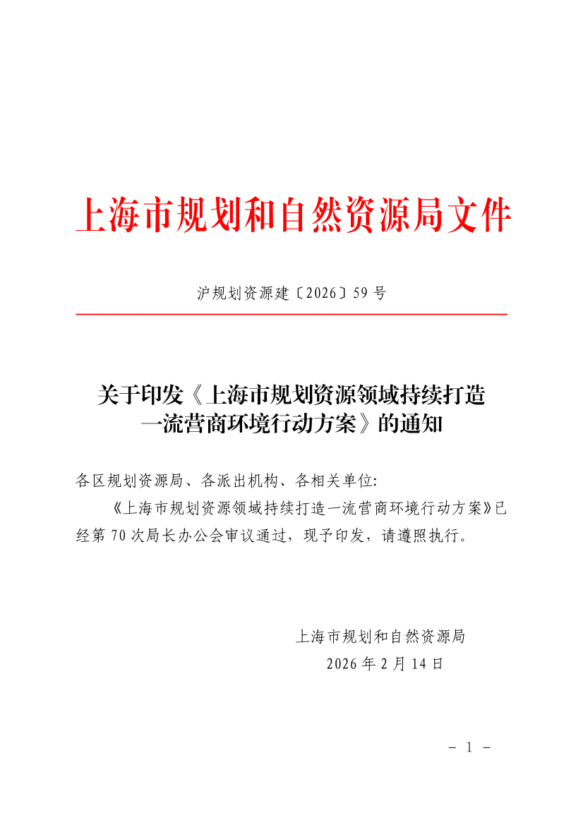 关于印发《上海市规划资源领域持续打造一流营商环境行动方案》的通知