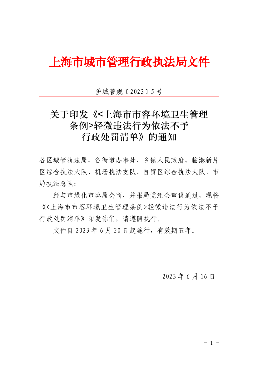 上海市城市管理行政执法局办公室 2023年6月16日印发