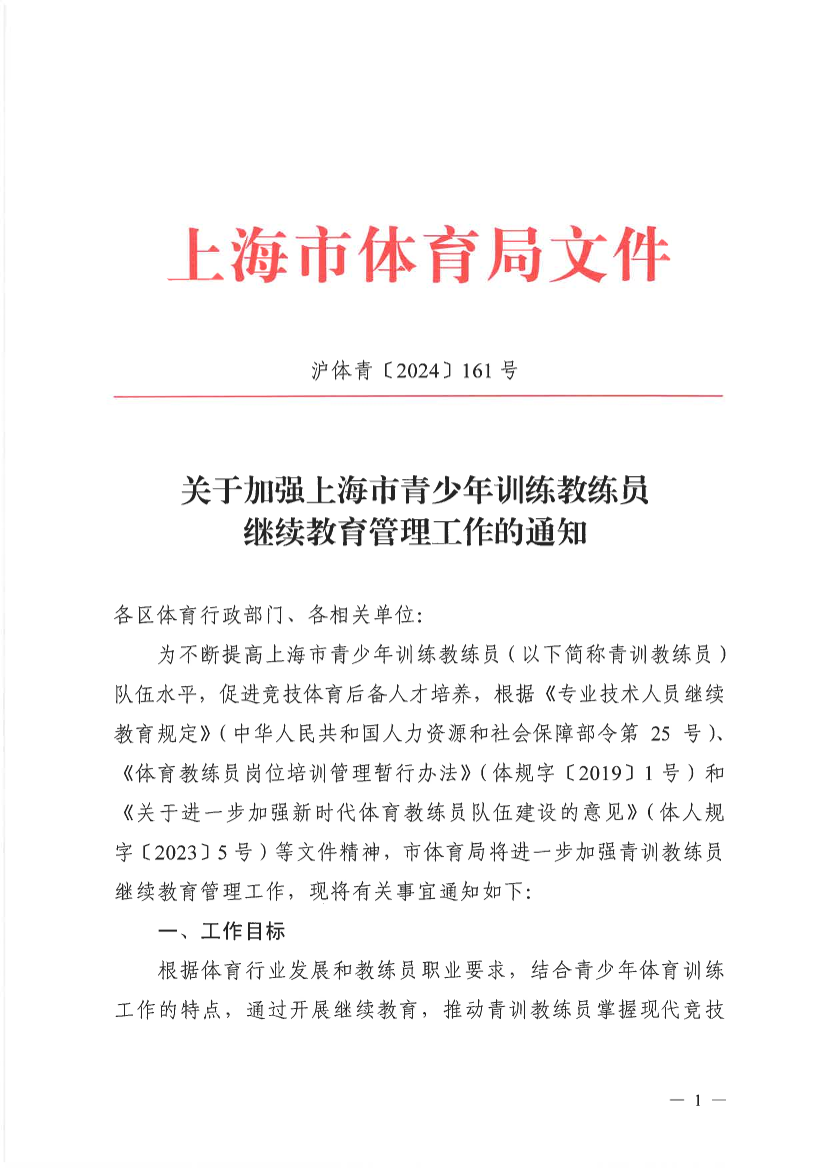 (一)上海市体育局负责全面统筹、协调和管理全市青训教练员继续教育工作。