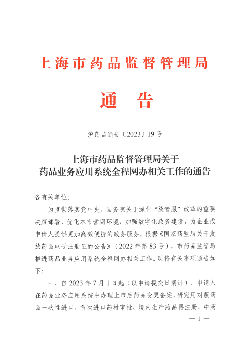 为贯彻落实党中央、国务院关于深化“放管服”改革的重要决策部署,优化本市营商环境,加强数字化政务建设,为企业或申请人提供更加高效便捷的政务服务,根据《国家药监局关于发放药品电子注册证的公告》(2022年第83号),市药品监管局推进药品业务应用系统全程网办相关工作。现将有关事项通告如下: