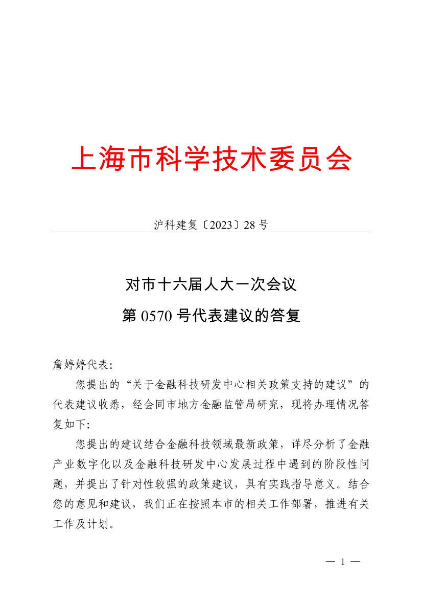 您提出的建议结合金融科技领域最新政策,详尽分析了金融产业数字化以及金融科技研发中心发展过程中遇到的阶段性问题,并提出了针对性较强的政策建议,具有实践指导意义。结合您的意见和建议,我们正在按照本市的相关工作部署,推进有关工作及计划。