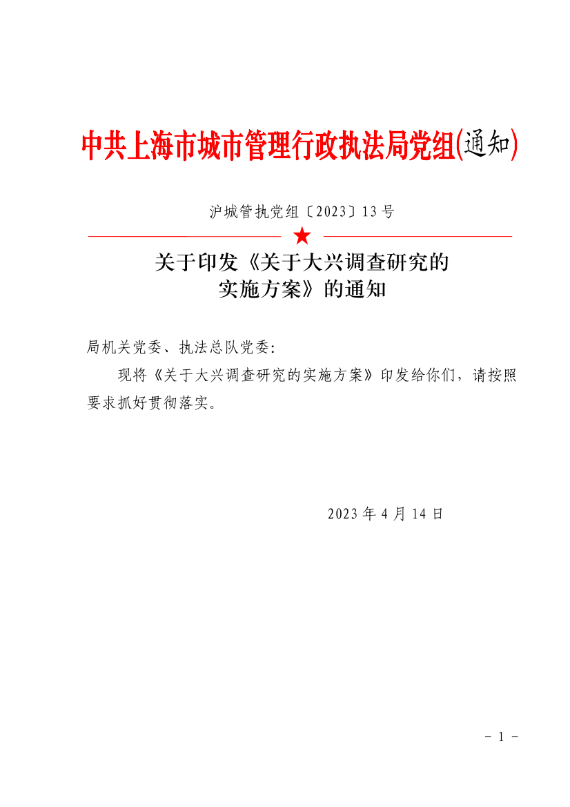 为深入学习贯彻习近平新时代中国特色社会主义思想,全面贯彻落实党的二十大精神,以大兴调查研究推动重实效、强实干、抓落实,扎实推进本市城管执法事业改革发展,根据市委和市建设交通工作党委印发的《关于在全党大兴调查研究的工作方案》(以下简称《方案》),把大兴调查研究作为开展学习贯彻习近平新时代中国特色社会主义思想主题教育的重要内容,结合我局实际,制定如下实施方案。