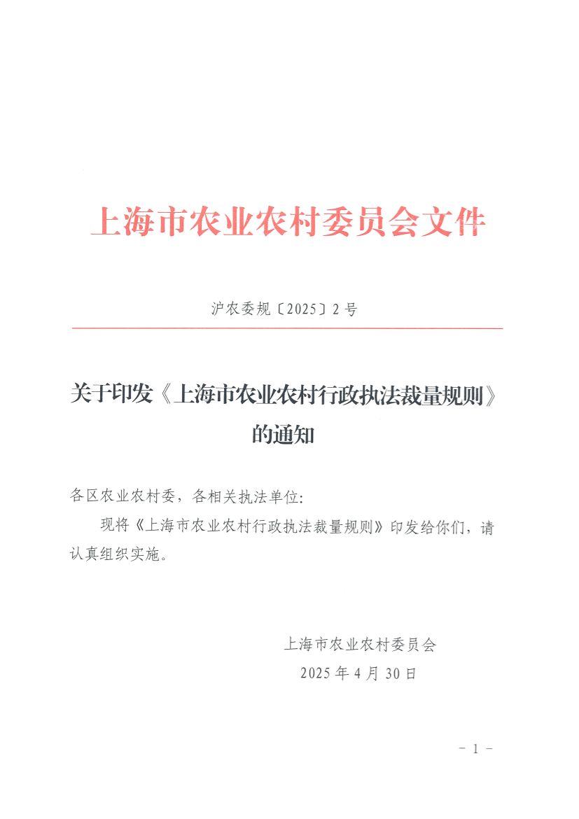 上海市农业农村行政执法裁量规则