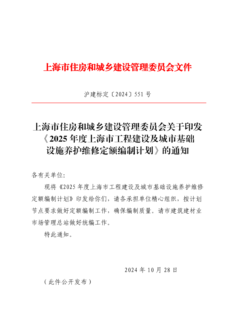 关于印发《2025年度上海市工程建设及城市基础设施养护维修定额编制计划》的通知