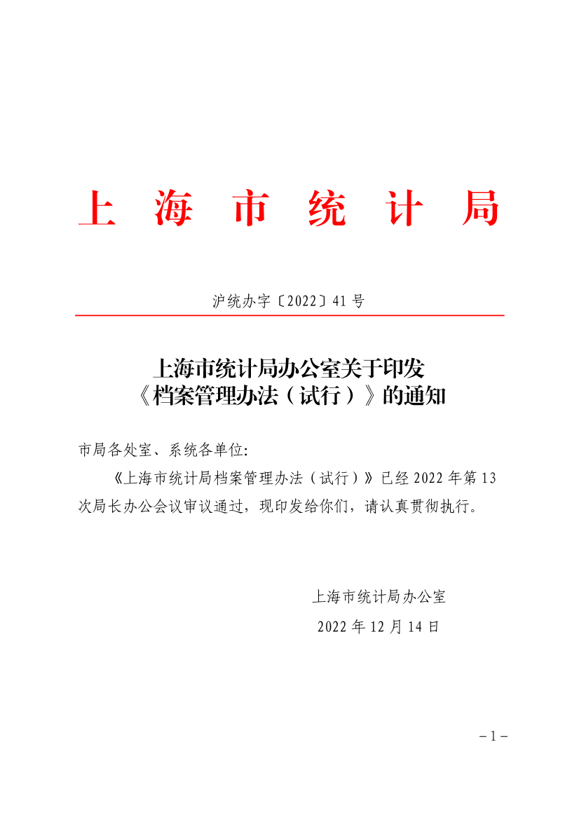 印发日期:2022-12-15 发布日期:2022-12-15 沪统办字〔2022〕41 号