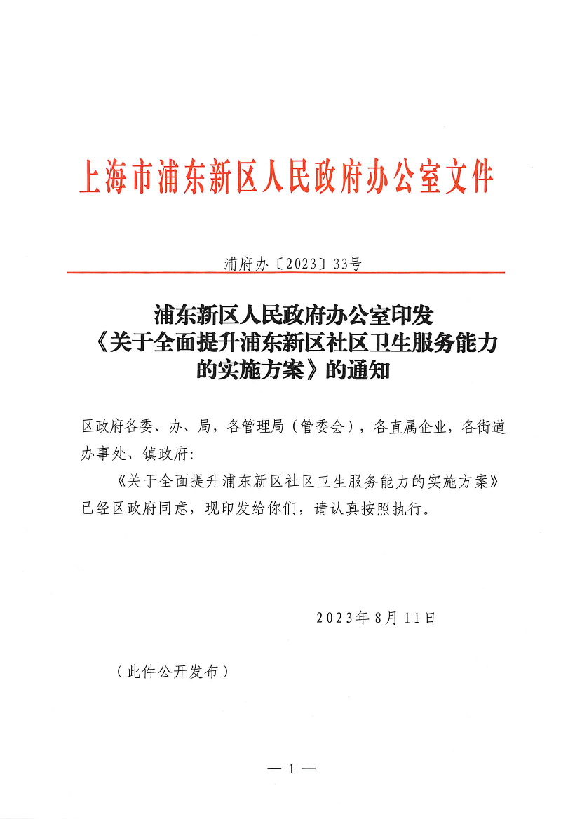 为提升浦东新区社区卫生服务能力,增强人民群众健康可及性与获得感,根据《上海市人民政府办公厅关于印发〈进一步提升本市社区卫生服务能力的实施方案〉的通知》(沪府办发〔2023〕7号)等文件精神,制定本实施方案。