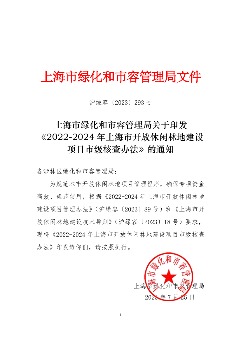 为规范本市开放休闲林地项目管理程序,确保专项资金高效、规范使用,根据《2022-2024年上海市开放休闲林地建设项目管理办法》(沪绿容〔2023〕89号)和《上海市开放休闲林地建设技术导则》(沪绿容〔2023〕18号)要求,现将《2022-2024年上海市开放休闲林地建设项目市级核查办法》印发给你们,请按照执行。