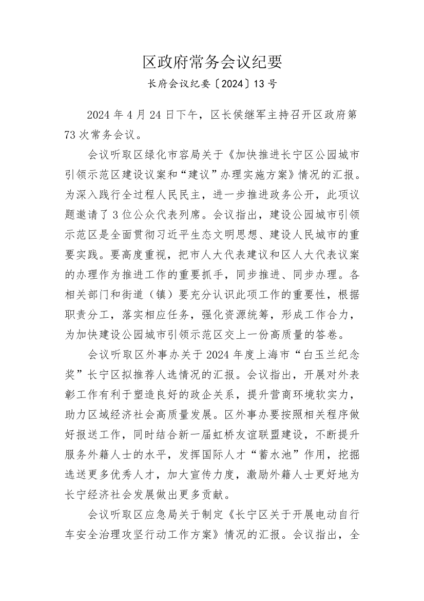 2024年4月24日下午,区长侯继军主持召开区政府第73次常务会议。