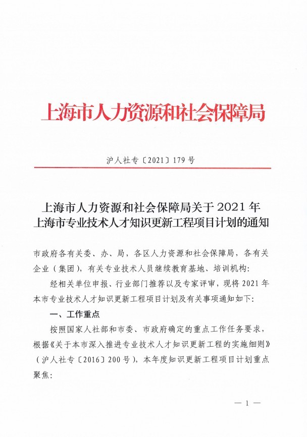 附件:1.2021年上海市专业技术人才知识更新工程项目计划