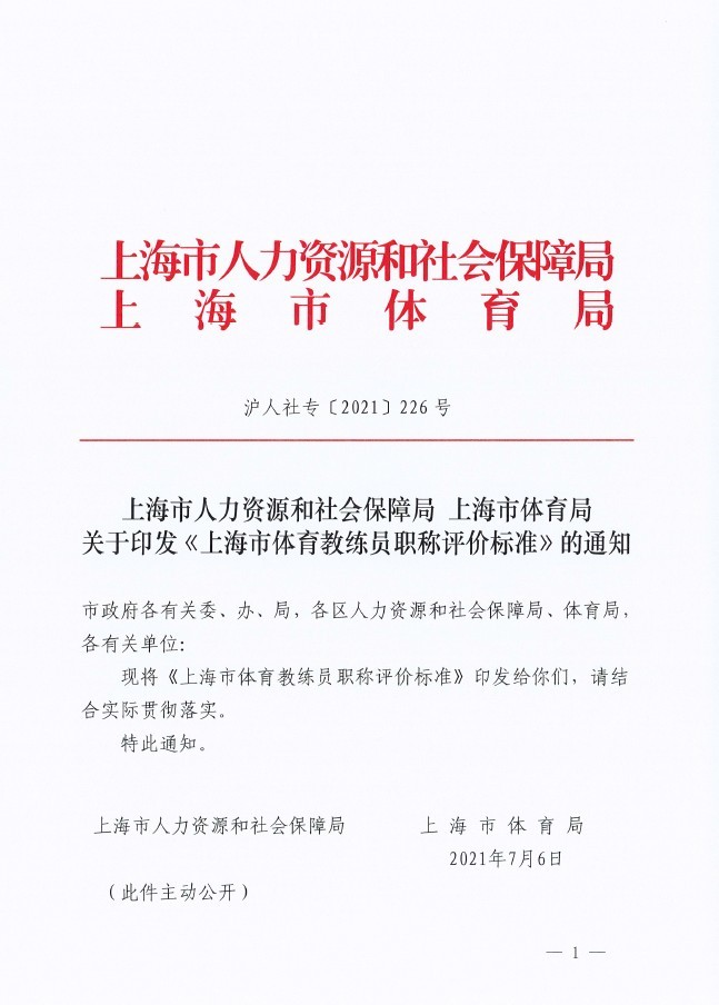 现将《上海市体育教练员职称评价标准》印发给你们,请结合实际贯彻落实。