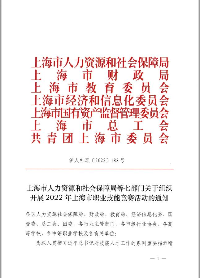 2022年上海市职业技能竞赛活动组织委员会(以下简称“市竞赛组委会”)由上海市人力资源和社会保障局、上海市财政局、上海市教育委员会、上海市经济和信息化委员会、上海市国有资产监督管理委员会、上海市总工会、共青团上海市委员会等单位组成,负责统筹协调本市各级各类职业技能竞赛活动。市竞赛组委会设办公室,负责全市职业技能竞赛的总体方案落实、组织协调和业务指导,市竞赛组委会办公室设在上海市职业技能鉴定中心(市竞赛组委会成员名单详见附件)。