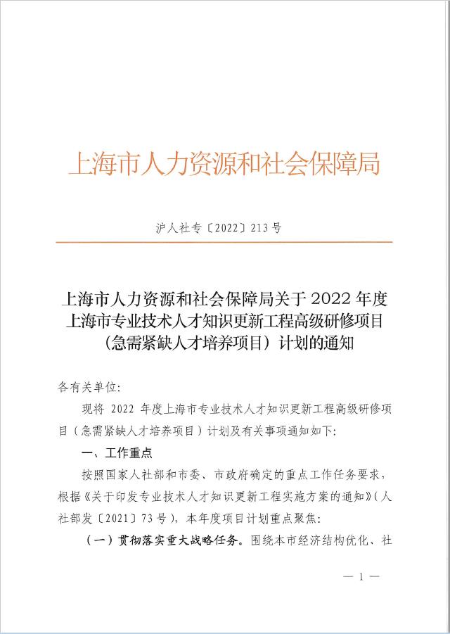 1.2022年上海市专业技术人才知识更新工程高级研修项目(急需紧缺人才培养项目)计划