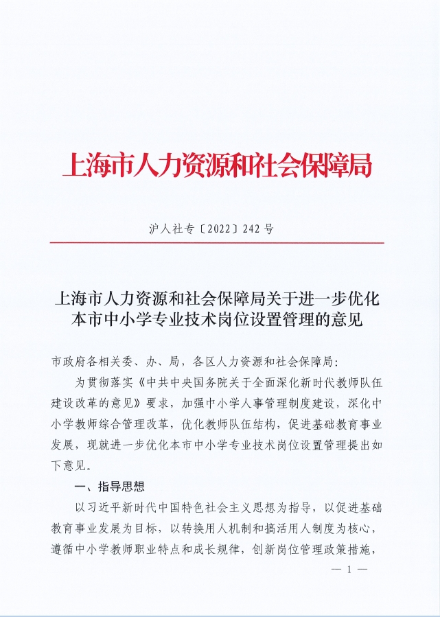 本意见自发布之日起实施。原上海市人事局关于印发《上海市普教系统教师职务结构比例和岗位设置的意见》的通知(沪人〔2004〕128号)同时废止。