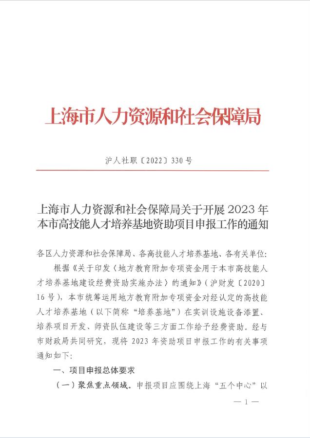 根据《关于印发〈地方教育附加专项资金用于本市高技能人才培养基地建设经费资助实施办法〉的通知》(沪财发〔2020〕16号),本市统筹运用地方教育附加专项资金对经认定的高技能人才培养基地(以下简称“培养基地”)在实训设施设备添置、培养项目开发、师资队伍建设等三方面工作给予经费资助。经与市财政局共同研究,现将2023年资助项目申报工作的有关事项通知如下: