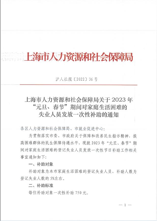 为贯彻落实市委、市政府关于保障和改善民生指示精神,提高困难群体的民生保障待遇水平,现就2023年“元旦、春节”期间对家庭生活困难的登记失业人员发放一次性节日补助工作相关事宜通知如下: