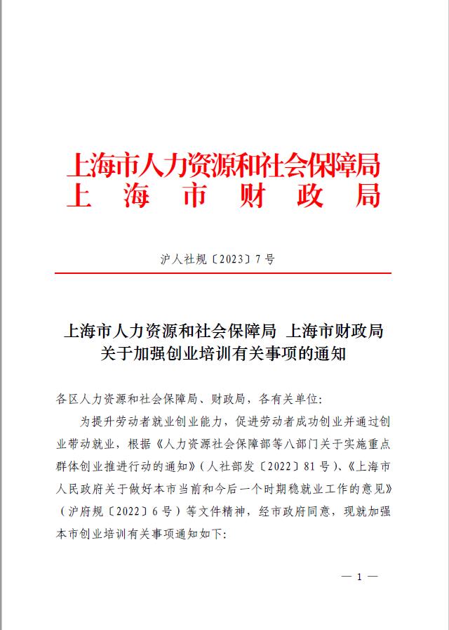 为提升劳动者就业创业能力,促进劳动者成功创业并通过创业带动就业,根据《人力资源社会保障部等八部门关于实施重点群体创业推进行动的通知》(人社部发〔2022〕81号)、《上海市人民政府关于做好本市当前和今后一个时期稳就业工作的意见》(沪府规〔2022〕6号)等文件精神,经市政府同意,现就加强本市创业培训有关事项通知如下: